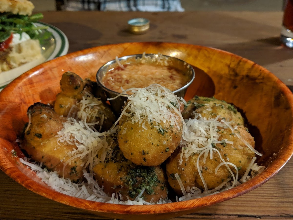 The pizza is great, but keep in mind they have 20% service charge -- which is fine, but some things shouldn't require and extra 20%. If you order the pepperoni pizza (with a kid) it might be worth getting the Parmesan on the side (it can be way too salty otherwise). We bought one of restaurant's wines (Cabin Vineyard - sparkling piquette) - $30, it it was undrinkable. It's a crown cap bottle and was clear that fermentation continued in the bottle and the wine had a very off taste. I'm not really sure the protocol for returning an opened bad wine, so if the restaurant owner or winemaker is reading this, I'd suggest reaching out. Cocktails were great though!